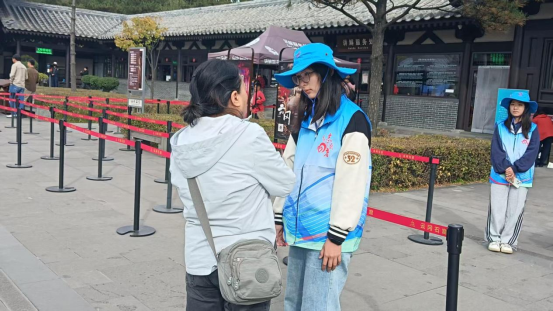 国庆、中秋“双节”期间,世界文化遗产云冈石窟迎来游览高峰。一支由共青团云冈区委、云冈区青年志愿者协会与山西大学商学院联合组建的50余人志愿者队伍,活跃在景区关键岗位,以热情专业的服务,为游客筑牢温暖防线,成为景区内一道亮丽的风景线。